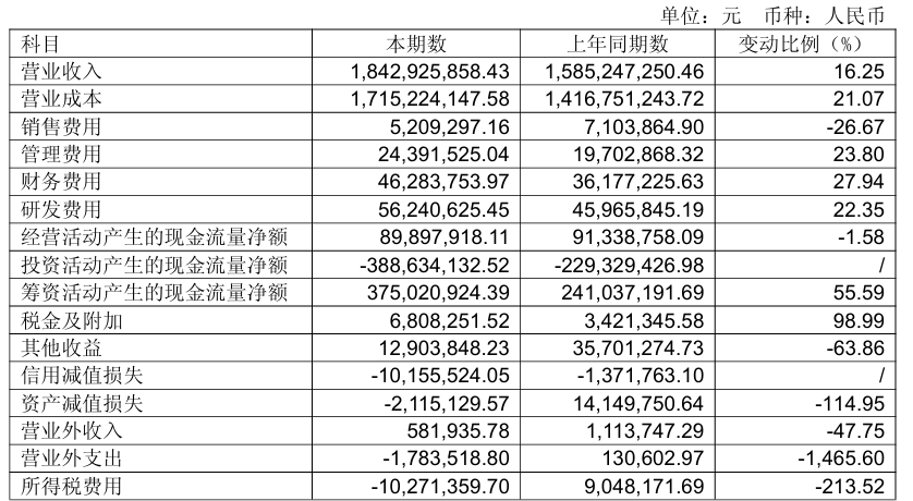 报告期内,公司业绩呈现出复杂态势,营业收入达 18.43 亿元,与上年同期相比,实现了 16.25% 的增长;而归属于上市公司股东的净利润则为 167.66 万元。从季度数据细分来看,第二季度表现尤为亮眼,营收飙升至 11.25 亿元,环比涨幅高达 56.79%,归母净利润更是实现了 1810.54 万元,成功扭转亏损局面,展现出强劲的复苏势头。