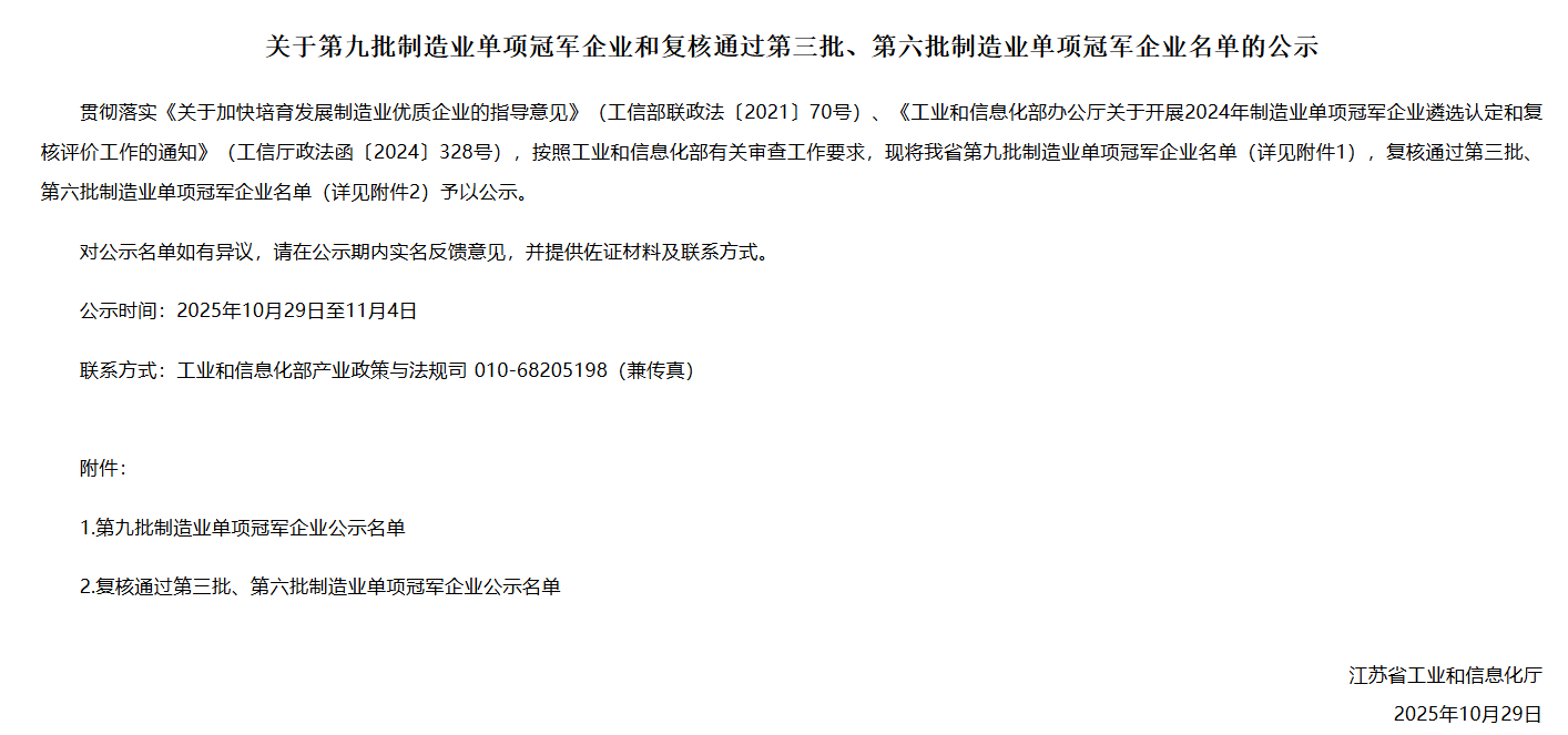 近日,工业和信息化厅发布了新一批制造业单项冠军企业榜单,苏州宝丽迪材料科技股份有限公司凭借在纤维母粒领域的突出成就,荣获这一国家级殊荣。